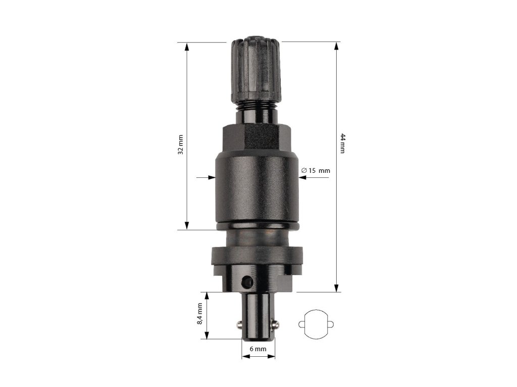Černě lakovaný hliníkový ventil typu snap-in určený pro TPMS senzory Autel MX-Sensor a 1-Sensor. Díky konstrukci snap-in je výměna ventilu rychlá a jednoduchá, bez nutnosti použití specializovaného TPMS nářadí.