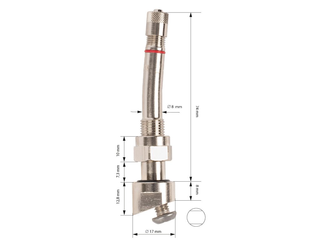 Vysoký niklovaný ventil určený pro senzory TPMS TRUCK, montované na ráfcích z lehkých slitin. Ventil je vhodný pro bezdušové pneumatiky a zajišťuje spolehlivou funkci systému kontroly tlaku v pneumatikách.