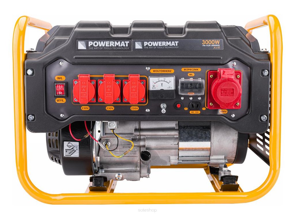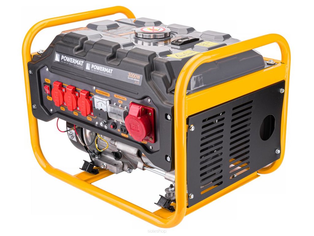 Elektrocentrála PM-AGR-3000MNS 3000 W, Powermat PM1194 vyrábí střídavý proud o napětí 230 V (3 zásuvky), 400 V (1 zásuvka) a stejnosměrný proud 12 V (1 zásuvka). Ideální řešení pro místa bez přístupu k elektrické energii. Je vybavena voltmetrem a pojistkami. Dále obsahuje čidlo hladiny oleje, které v případě nízké hladiny automaticky vypne motor. Spouštění je manuální, pomocí šňůry. Elektrocentrála se používá v řemeslech, stavebnictví a na zahradách pro práci s elektrickým nářadím, čerpadly a osvětlením.