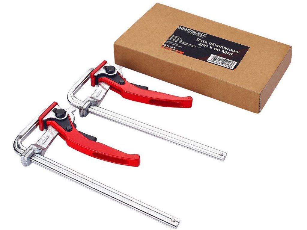 - Profesionální páková svěrka o rozměrech 200×60 mm – ideální pro truhlářské, montážní a dílenské práce