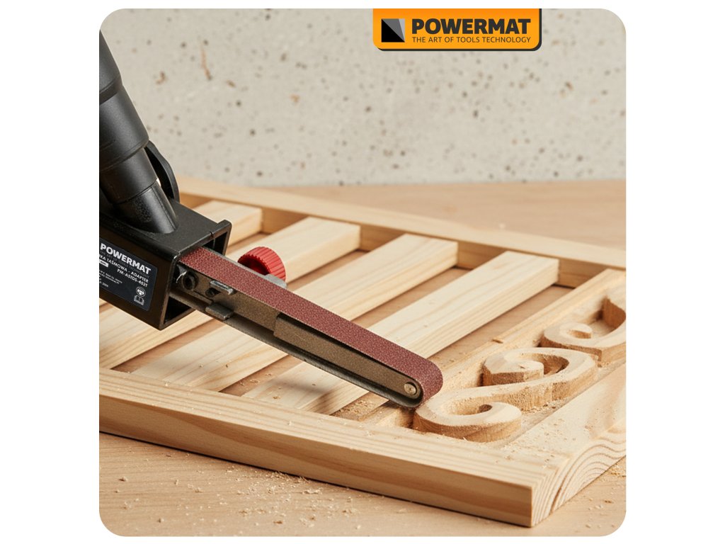 Praktický brusný nástavec POWERMAT PM-ASTDS-452T umožňuje rychle přeměnit běžnou úhlovou brusku se závitem M14 na kompaktní pásovou brusku. Díky výměnným hlavám a sadě brusných pásů různých zrnitostí je ideální pro přesné broušení kovu i dřeva, zejména v hůře dostupných místech.
