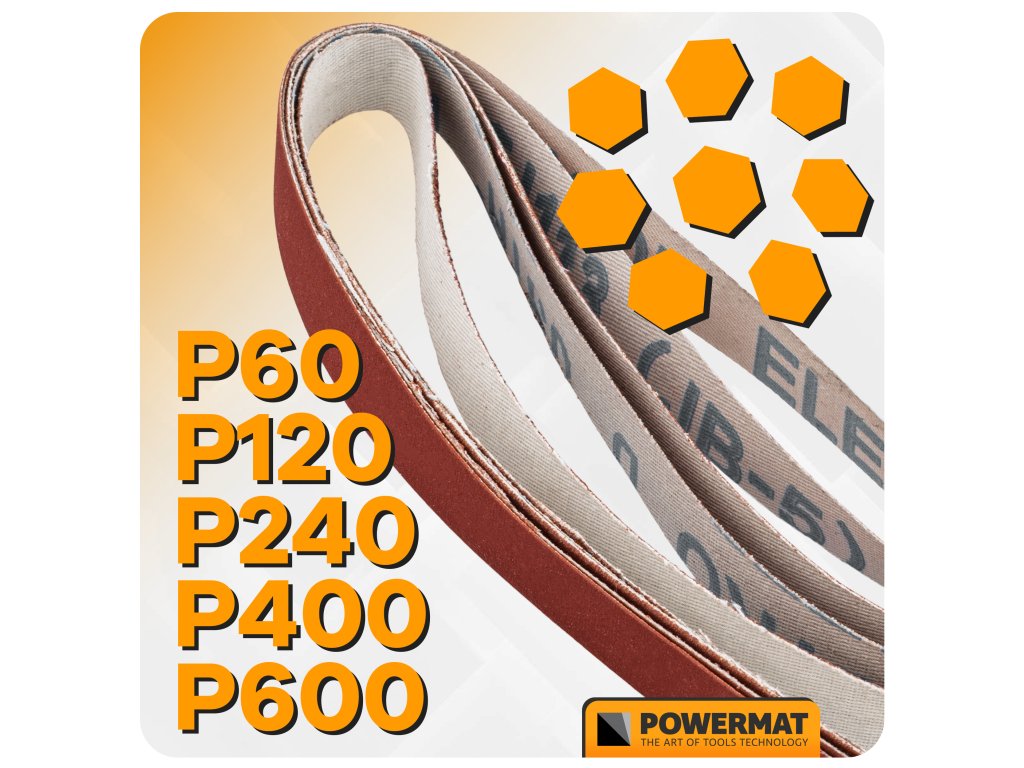 - 5× brusný pás: P60, P120, P240, P400, P600