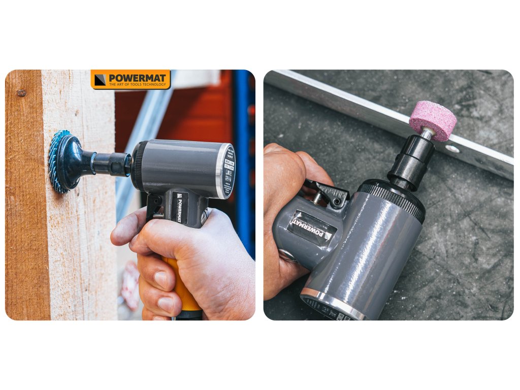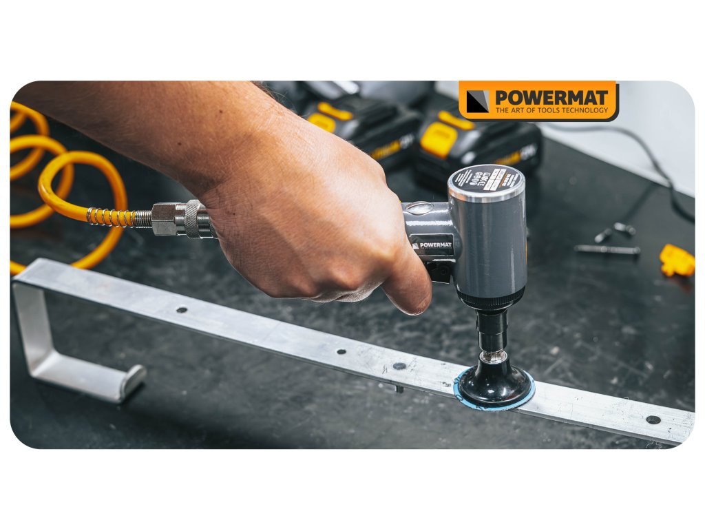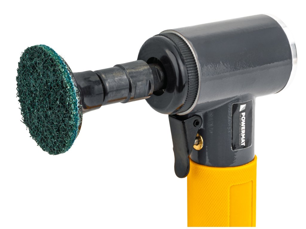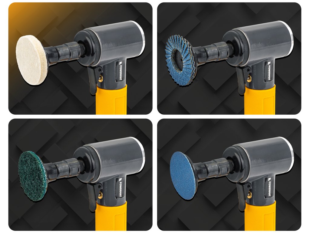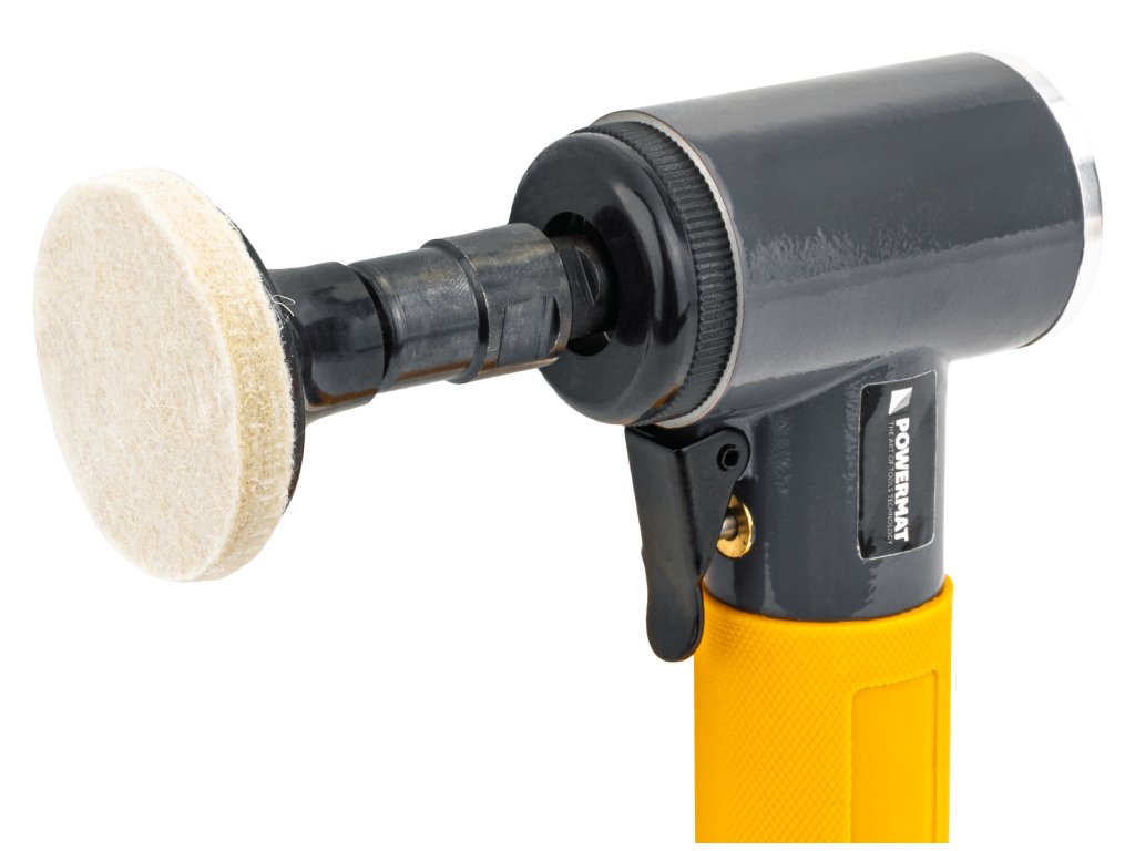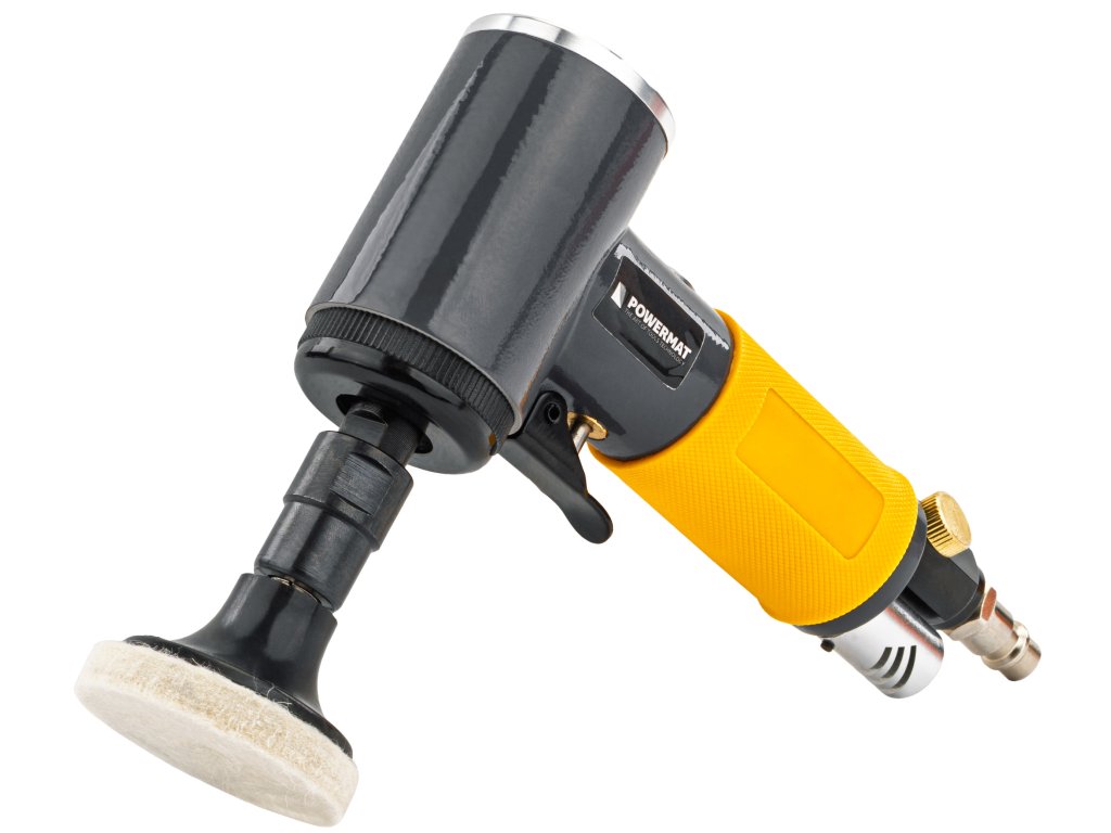 Pneumatická úhlová bruska Powermat PM-SPMP-90T je profesionální nástroj určený pro přesné broušení, čištění, leštění a opracování kovů, dřeva i plastů. Díky vysokému výkonu a lehké konstrukci se ideálně hodí pro práci v dílnách, autoservisech i průmyslových provozech. Bruska nabízí plynulou regulaci otáček a široké možnosti použití díky bohatému příslušenství, které umožňuje kompletní proces opracování povrchu – od hrubého broušení až po jemné leštění.