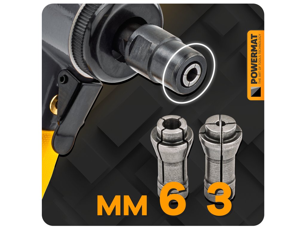 - výměnné upínací kleštiny (3 mm a 6 mm) pro různé typy nástrojů