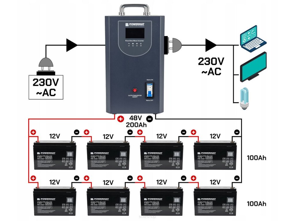 Záložní zdroj 2400W UPS PM-UPS-3000MP, Powermat PM1218