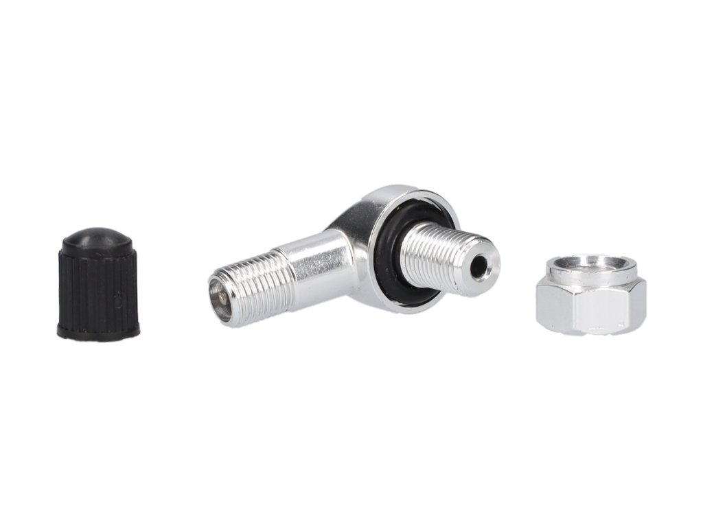 Úhlový ventil o sklonu 90° je určen pro bezdušové pneumatiky motocyklů a skútrů. Díky kompaktním rozměrům a ohnutému tvaru je ideální pro ráfky s omezeným prostorem, kde je obtížný přístup k ventilu. Ventil je vyroben z odolného hliníku a má montážní průměr 8,3 mm, což odpovídá standardu některých lehkých motocyklových kol.