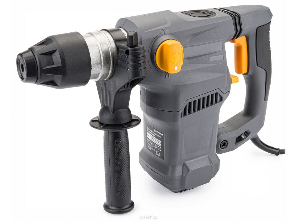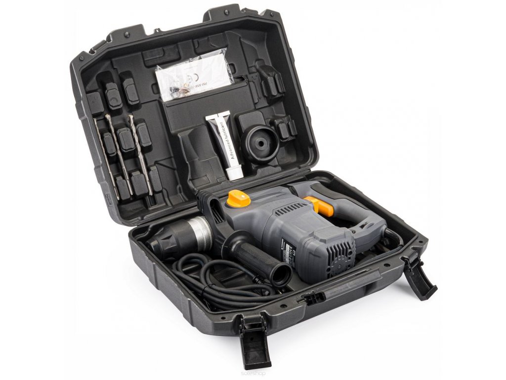 Příklepová vrtačka POWERMAT PM-MU-2600M s výkonem 2600W a systémem upínání vrtáků SDS-plus. Antivibrační systém rukojeti AVH snižuje vibrace vzniklé při používání.