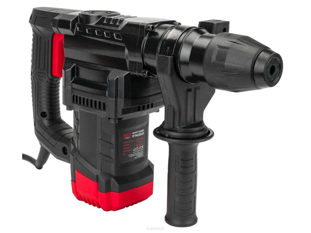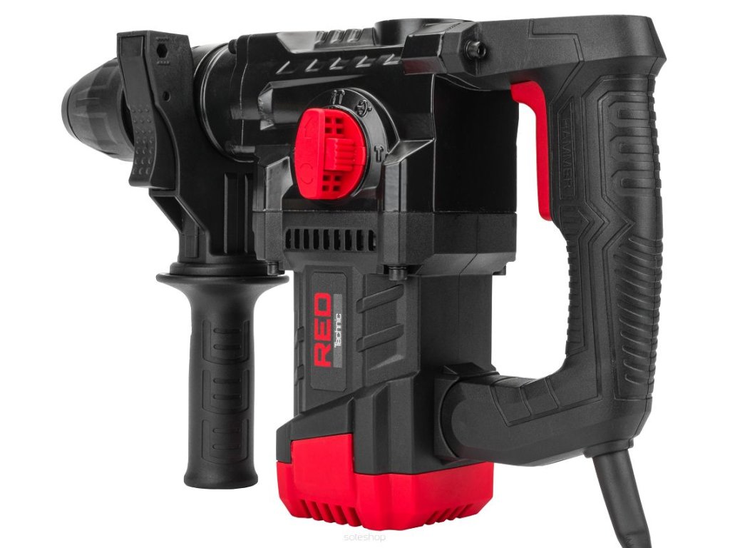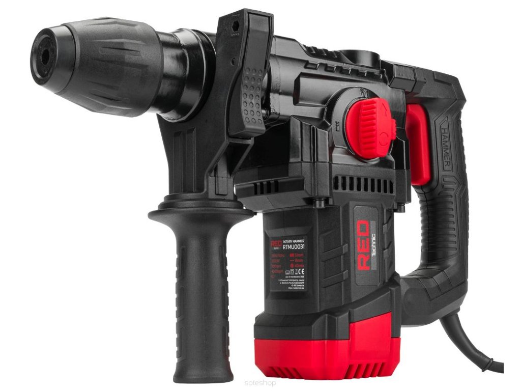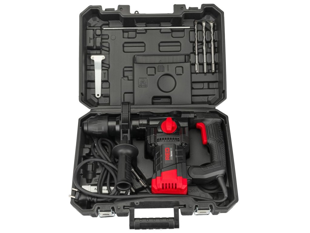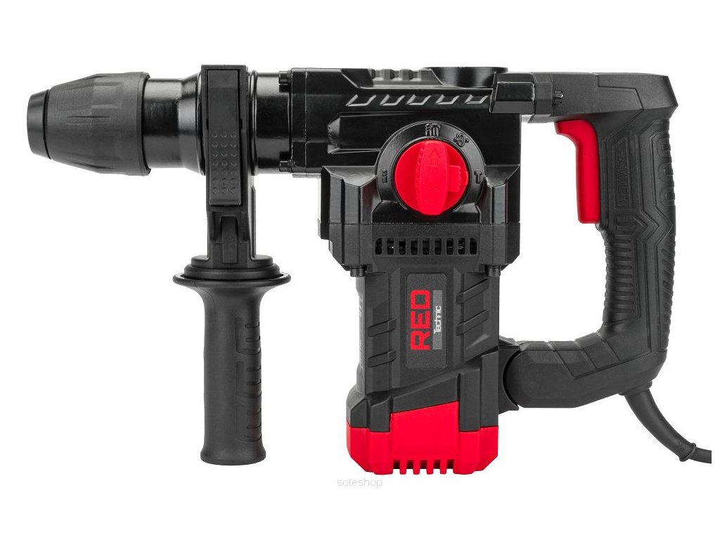 Elektrická příklepová vrtačka, SDS+ sestava 2200W, RED TECHNIC RTMU0031 s výkonem 2200 W a systémem uchycení vrtáků SDS-plus. Antivibrační systém rukojeti AVH snižuje vibrace vznikající při používání.