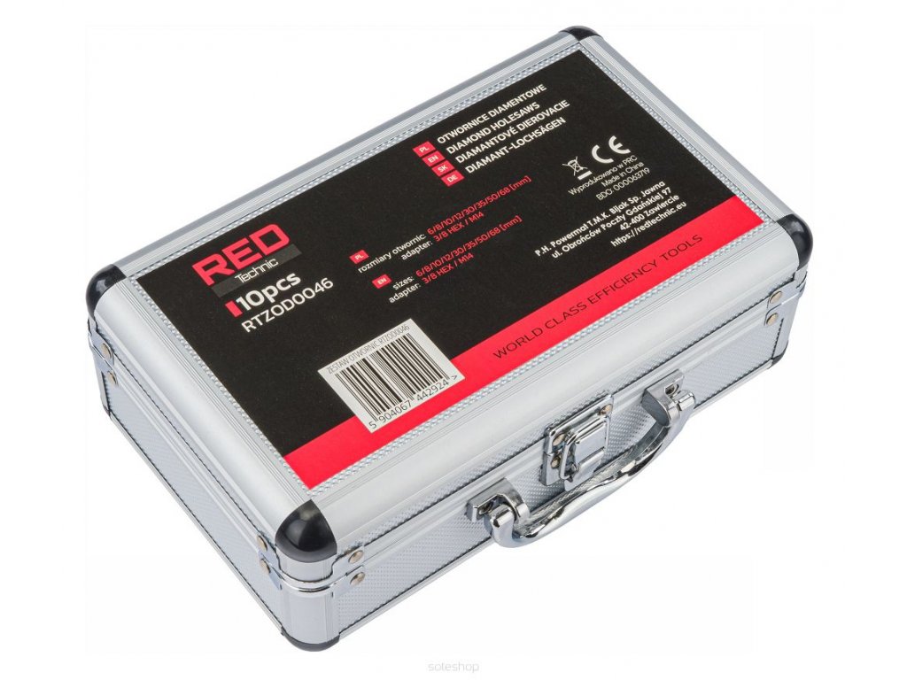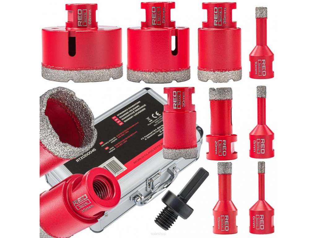 Diamantové vrtací korunky 6-68 mm, sada 9, RED TECHNIC RTZOD0046