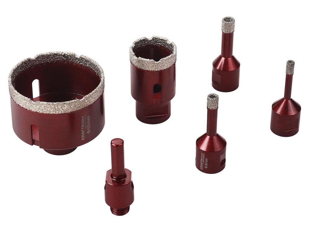 Korunkové diamantové vrtáky do keramiky, kamene, 6 - 68 mm, 1/4", sada 6 ks, Kraft&Dele KD5953