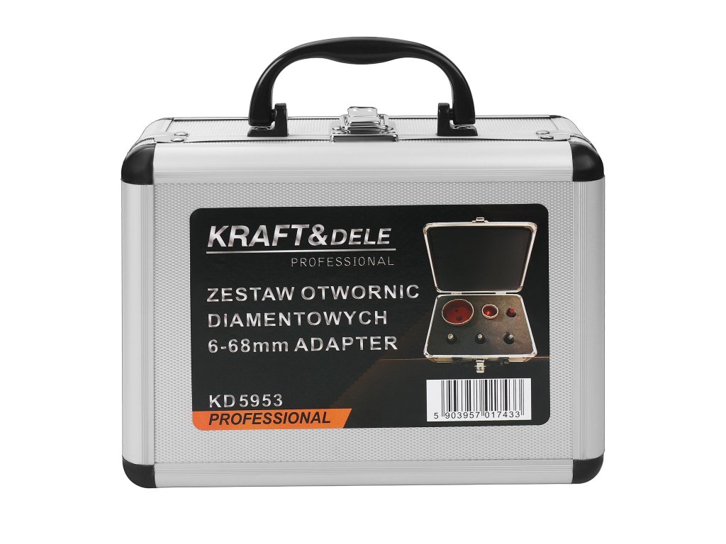 Sada diamantových vykružovacích korunek KRAFT&DELE KD5953 je kompletním řešením pro přesné vrtání otvorů do tvrdých materiálů, jako je keramika, gres nebo kámen. Díky různým průměrům korunek a přiloženému adaptéru je práce rychlá, komfortní a precizní.