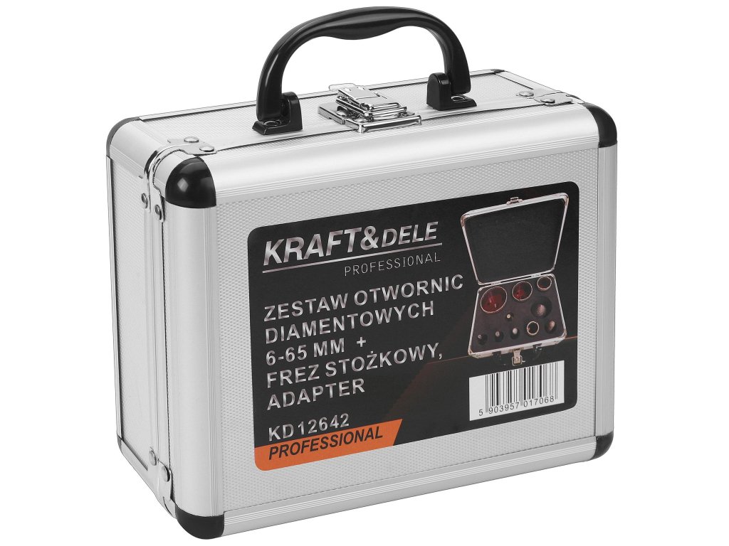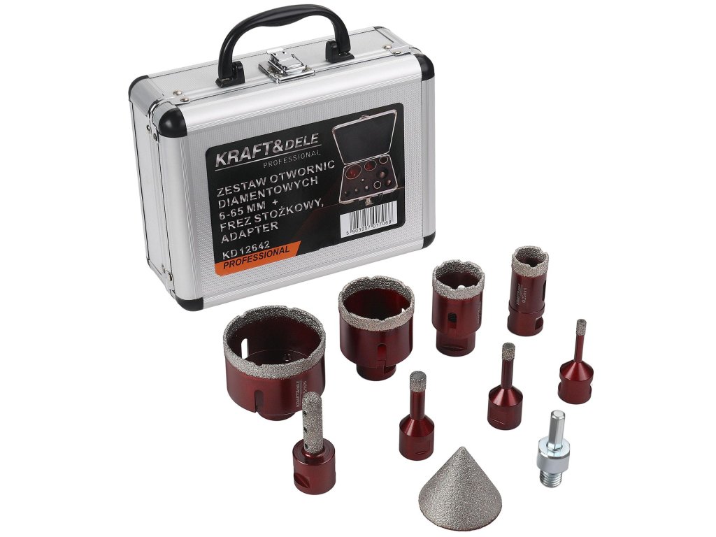 Sada diamantových vykružovacích korunek KRAFT&DELE KD12642 je určena k přesnému vrtání otvorů do tvrdých materiálů, jako je keramika, gres nebo přírodní kámen. Díky osmi různým průměrům korunek, kuželovému frézu pro dokončovací práce a přiloženému adaptéru je vrtání rychlé, efektivní a přesné.