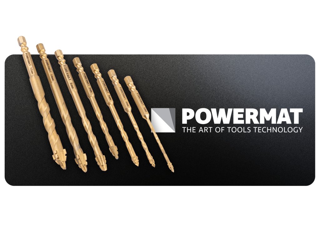 Sada vrtáků Powermat PM-ZWSC-7T je určena pro vrtání bez příklepu do skla, keramiky, porcelánu i kameniny. Čtyřbřitá mimoosá konstrukce zajišťuje stabilní vedení vrtáku bez skluzu po povrchu a umožňuje čisté otvory bez prasklin a odštěpků.