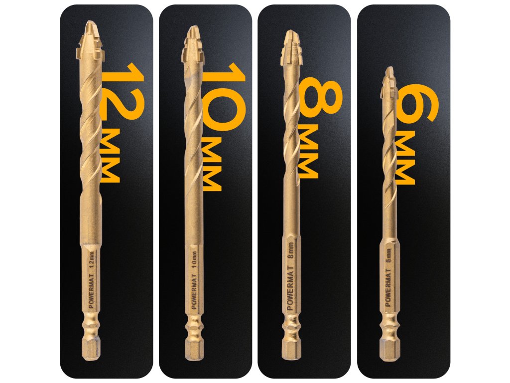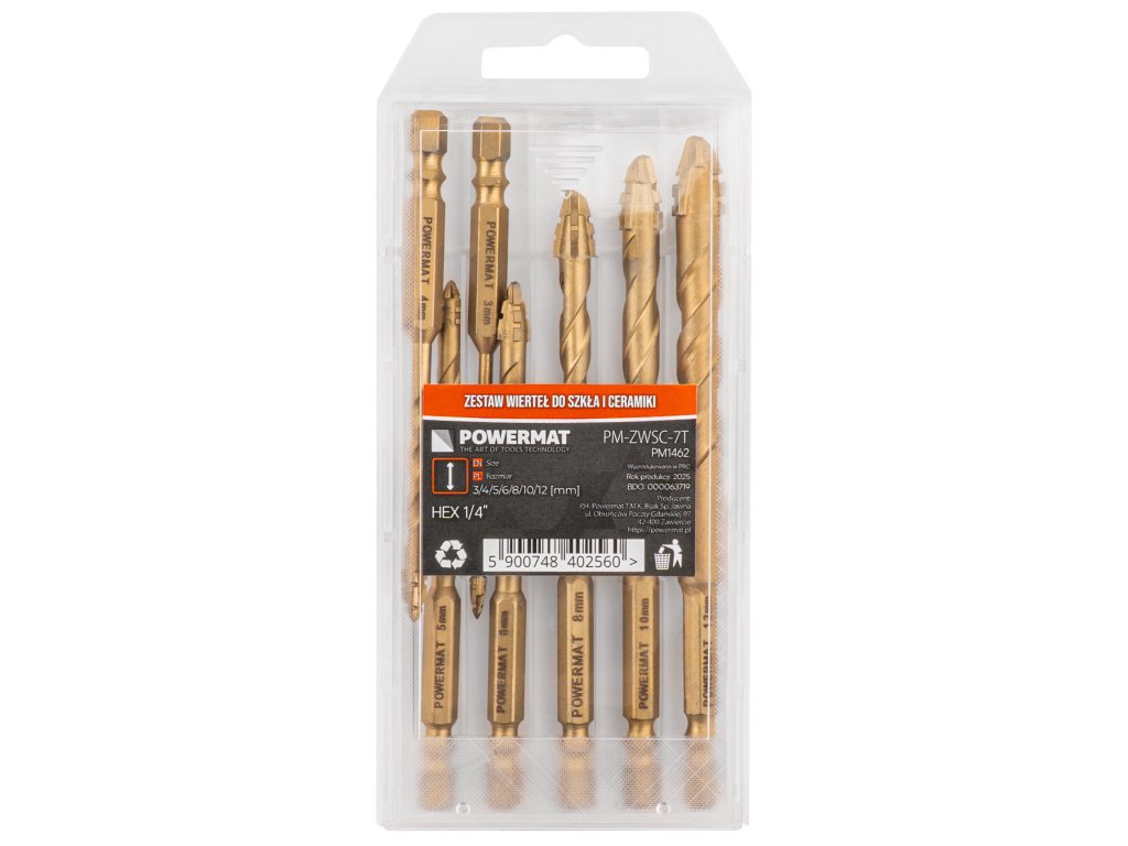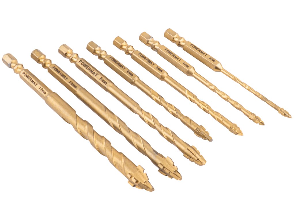 Vrtáky do skla a kameniny (sada 7ks) 3–12mm PM-ZWSC-7T, Powermat PM1462