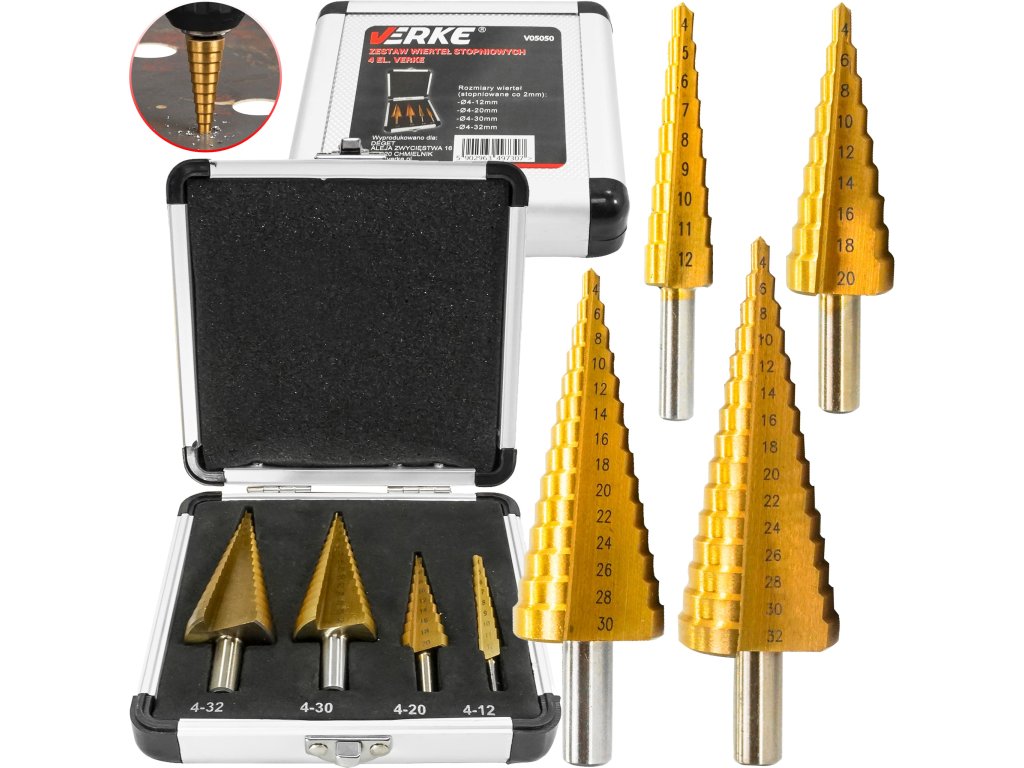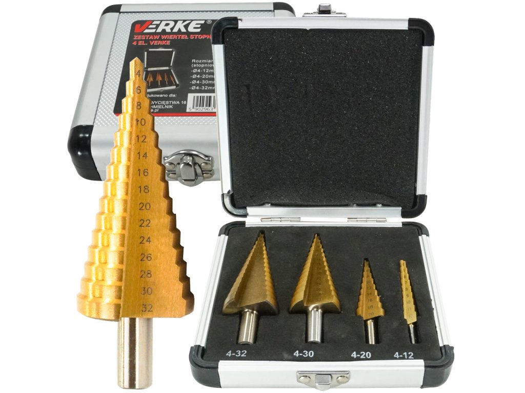 Sada stupňových vrtáků 4-32mm, 4 ks, Verke V05050