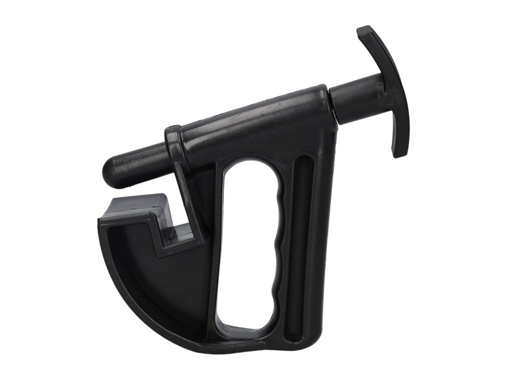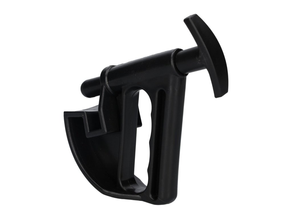 Vyrobený z kvalitního plastu s kovovou pružinou a hliníkovým čepem, což zaručuje lehkost, pevnost a dostatečnou odolnost pro běžné použití. Díky zabudovanému klipsu a pružině umožňuje rychlé a pohodlné upevnění bez nutnosti použití nářadí.