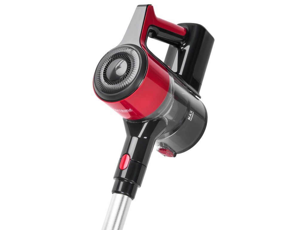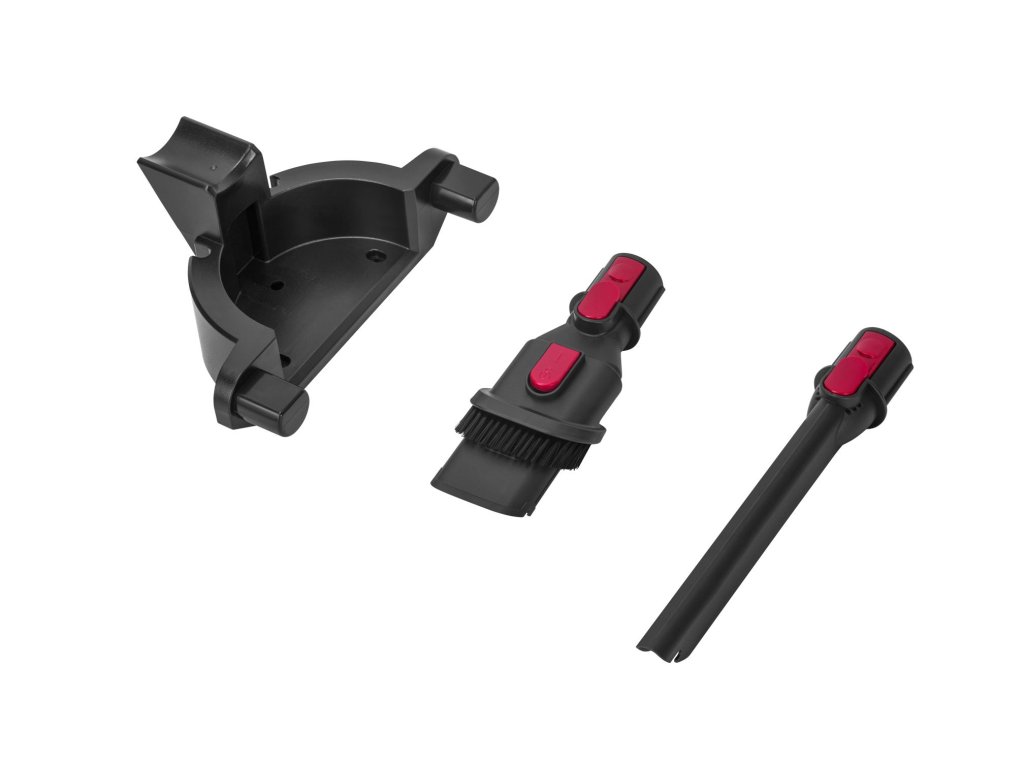 Dotykový LED panel informuje o aktuálním režimu rychlosti, stavu baterie a zaplnění nádoby na prach, což zvyšuje komfort při používání. Omývatelný HEPA filtr zajišťuje čistý vzduch v místnosti a držák na stěnu umožňuje praktické uskladnění vysavače.