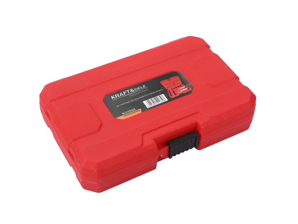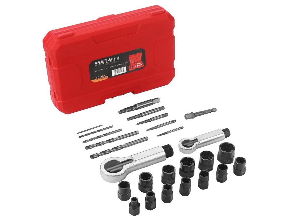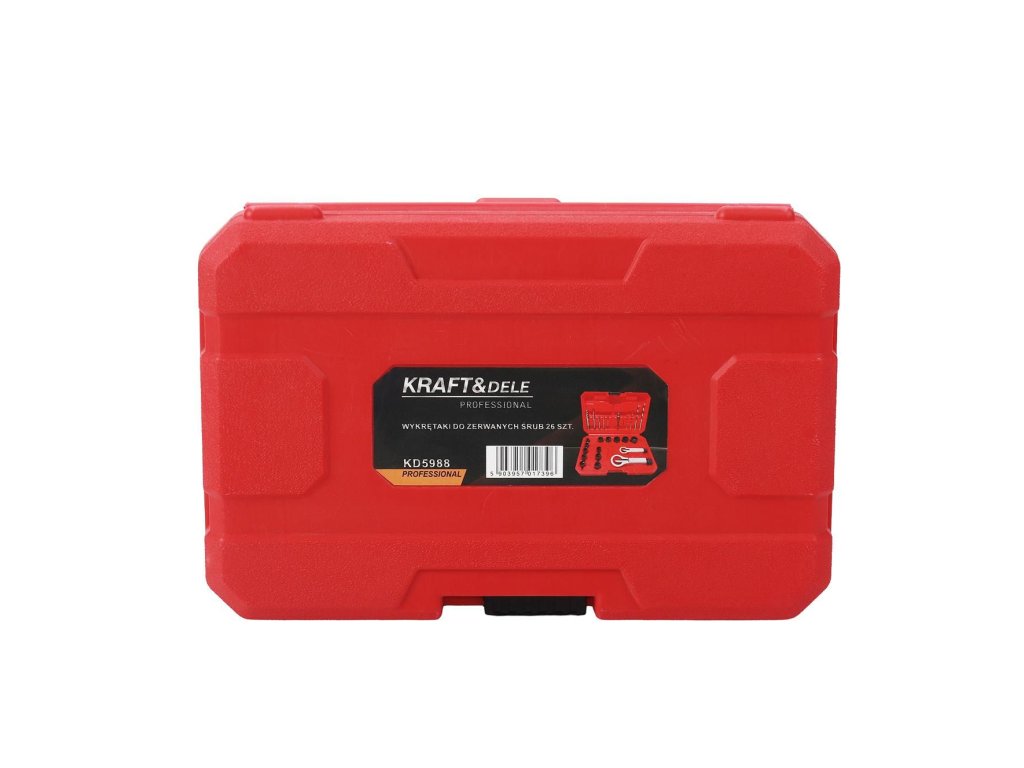 Sada vytahováků zalomených šroubů Kraft&Dele KD5988 je profesionální řešení určené k bezpečnému a efektivnímu odstranění zalomených, poškozených nebo zkorodovaných šroubů. Díky široké škále 26 kusů nástrojů najde využití v autoservisech, dílnách, garážích i při běžných opravách.