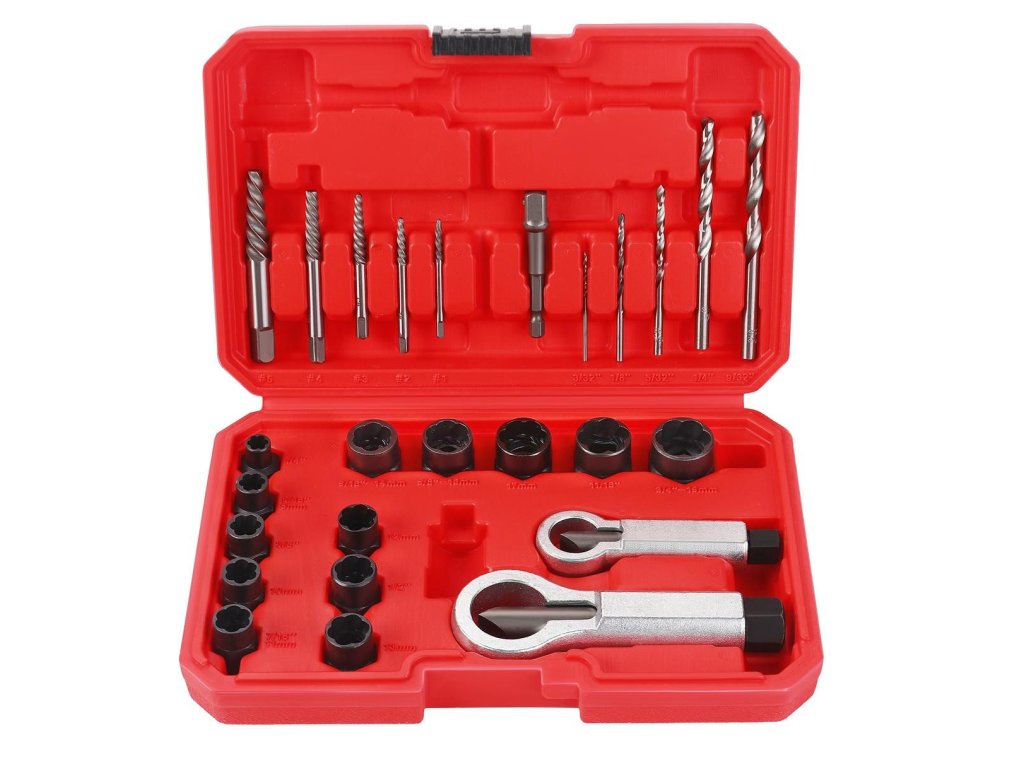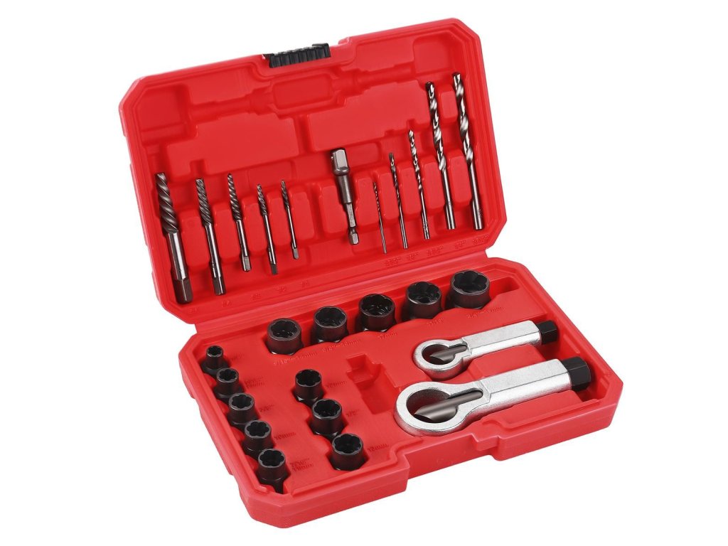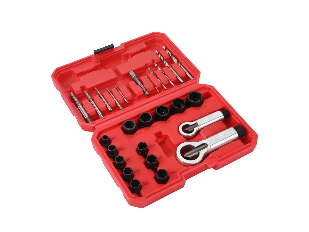 - Kompletní sada 26 kusů pro práci se zalomenými, poškozenými a zkorodovanými šrouby