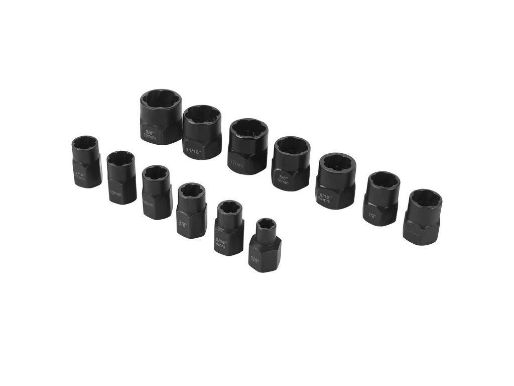 - Vytahováky: 1/4", 8 mm, 3/8", 10 mm, 11 mm, 12 mm, 1/2", 13 mm, 14 mm, 16 mm, 17 mm, 11/16", 19 mm