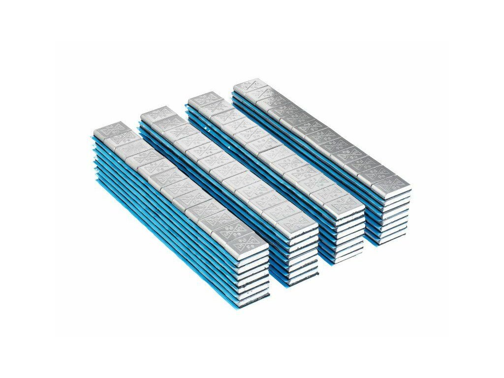 Samolepicí ocelová závaží typu SLIM s ochrannou pozinkovanou povrchovou úpravou v šedé ocelové barvě jsou určena pro přesné vyvažování hliníkových ráfků u osobních, SUV i dodávkových vozidel. Balení obsahuje 50 pásků, každý o hmotnosti 60 g (12 segmentů po 5 g). Díky elegantnímu čtvercovému tvaru se zaoblenými hranami se závaží výborně přizpůsobují tvaru ráfku a umožňují precizní vyvážení. Široká modrá krycí páska chrání lepicí vrstvu a usnadňuje manipulaci při montáži.