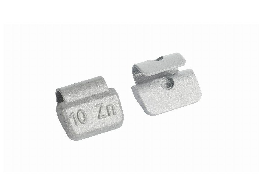 Zinková nabíjecí závaží o hmotnosti 10 gramů určená pro hliníkové ráfky jsou opatřena šedým polymerovým ochranným povlakem. Montují se naražením na ráfek pomocí speciálních kleští na závaží. Přesně dimenzovaná pružinka zajišťuje pevné a stabilní usazení. Díky elegantnímu tvaru závaží perfektně přiléhají ke kraji lemu ráfku.