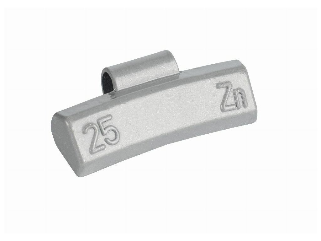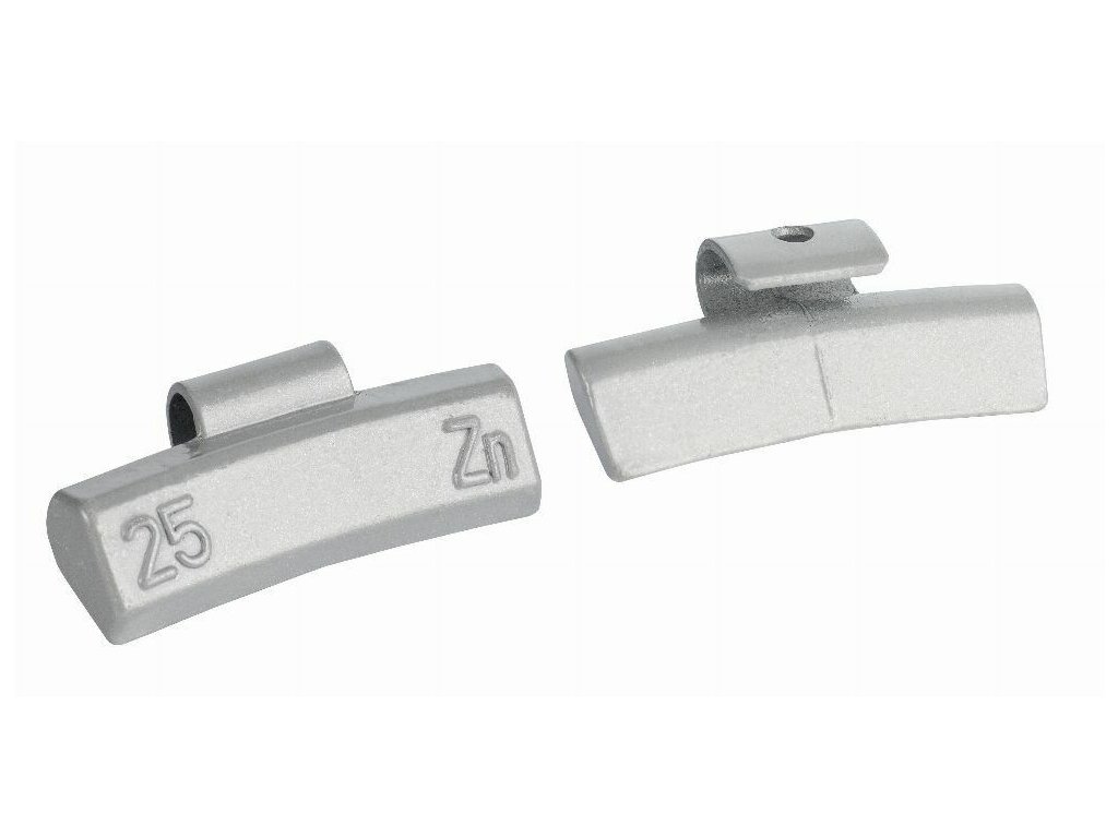 Zinková nabíjecí závaží o hmotnosti 25 gramů určená pro hliníkové ráfky jsou opatřena šedým polymerovým ochranným povlakem. Montují se naražením na ráfek pomocí speciálních kleští na závaží. Přesně dimenzovaná pružinka zajišťuje pevné a stabilní usazení. Díky elegantnímu tvaru závaží perfektně přiléhají ke kraji lemu ráfku.