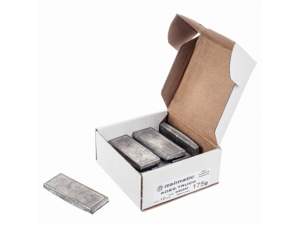 Samolepicí olověné závaží bez povrchové úpravy je určeno pro přesné vyvažování hliníkových kol nákladních vozidel. Balení obsahuje 10 kusů závaží o hmotnosti 175 gramů. Díky elegantnímu čtvercovému tvaru se závaží perfektně přizpůsobí tvaru ráfku a zajišťuje přesné vyvážení. Matně šedá barva zajišťuje nenápadný vzhled na světlých discích. Výrobek je alternativou k modelu Hofmann 551-5.