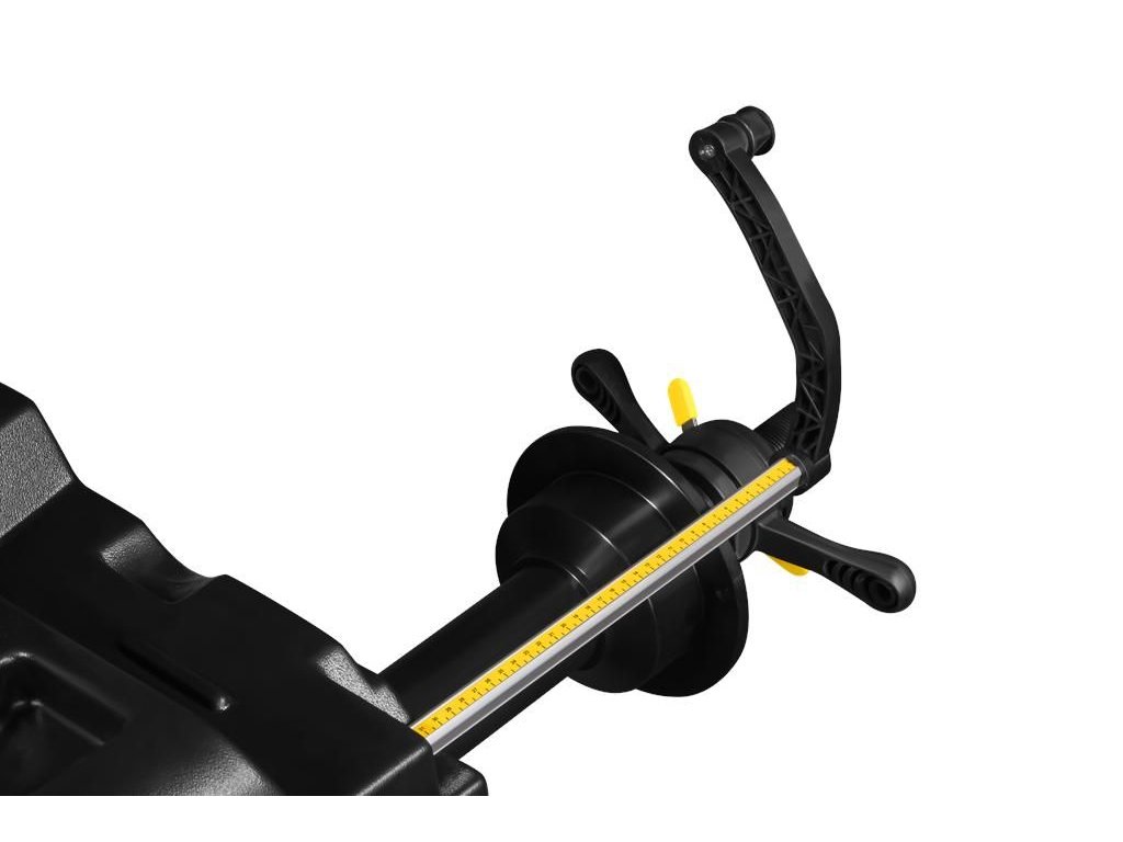 Laserové zaměřování zajišťuje přesné umístění závaží, zatímco kombinovaný nožní a elektromagnetický brzdový systém umožňuje snadné sejmutí kola a maximální kontrolu nad pohybem hřídele.