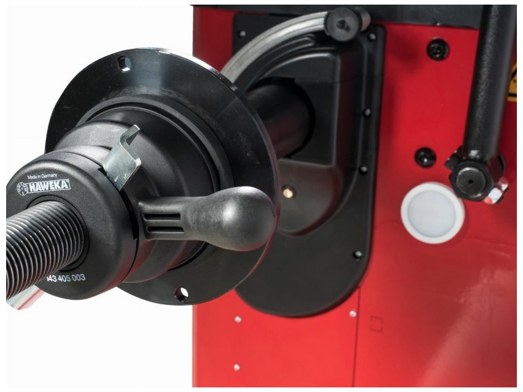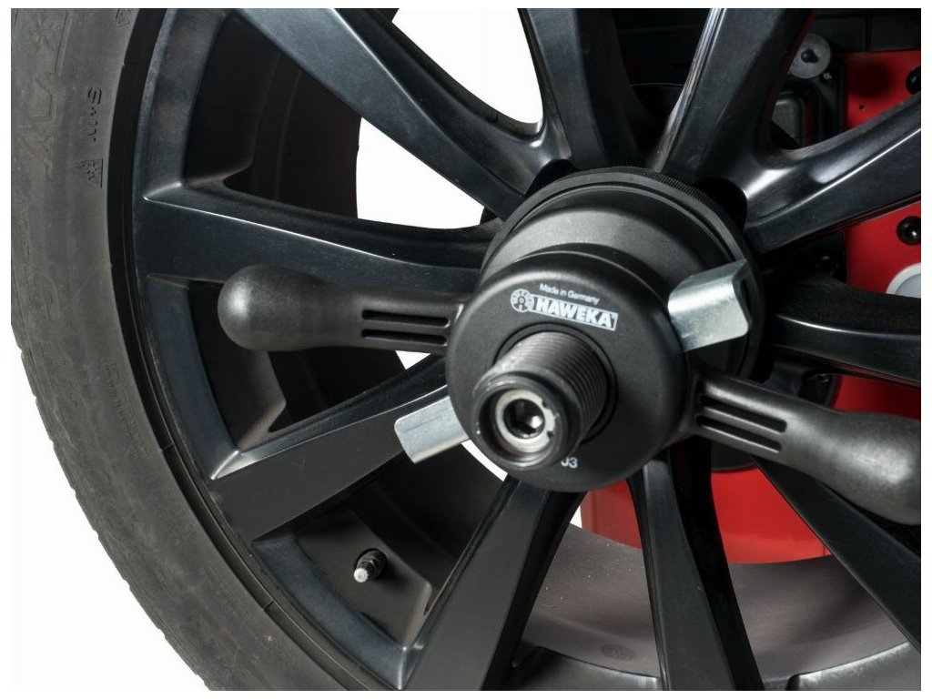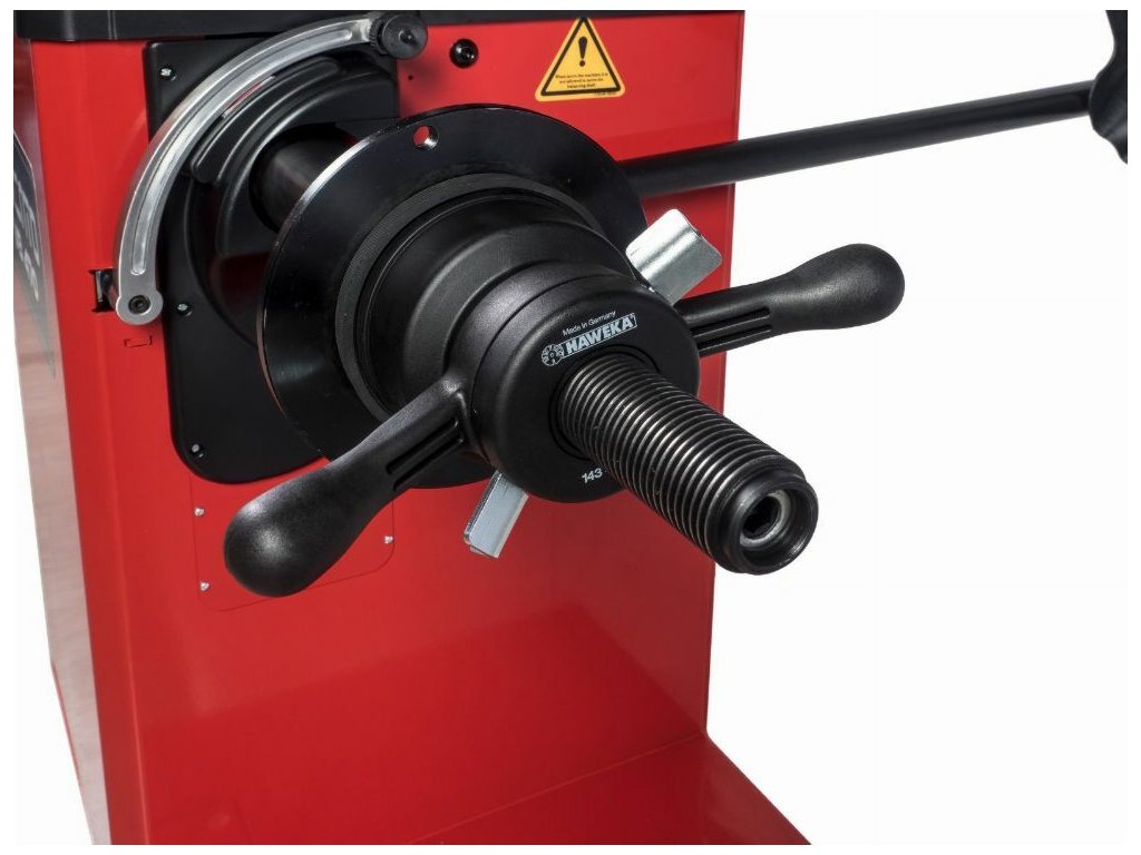 Přesně označuje místo pro umístění závaží v poloze „na šesté hodině“. - Upínací systém HAWEKA