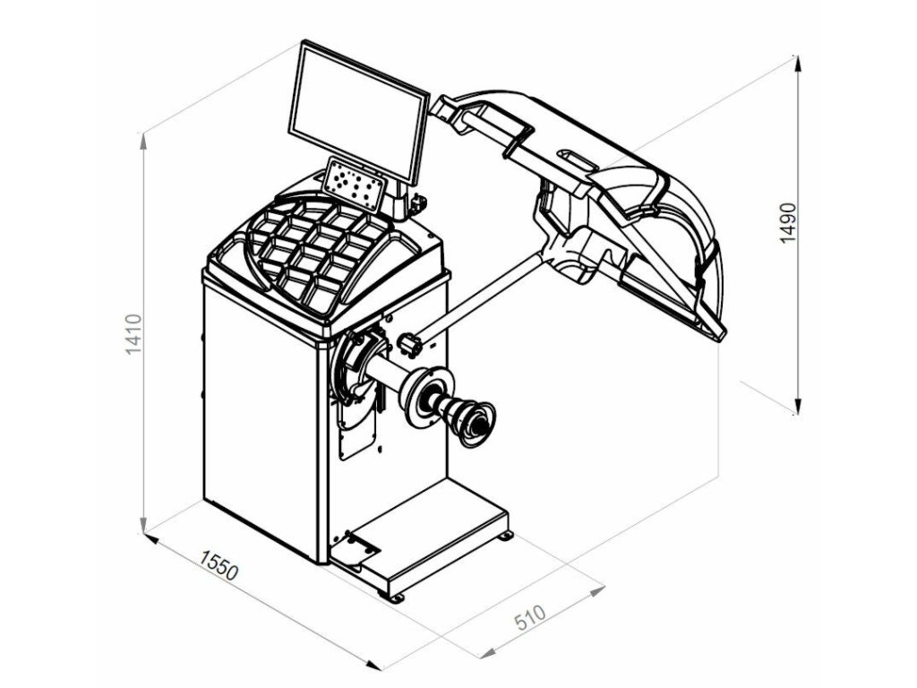 Vyvažovačka kol INVENTO VB 470, automatická vyvažovačka kol osobních a dodávkových vozidel s laserem, LED osvětlením a 19" displejem.
