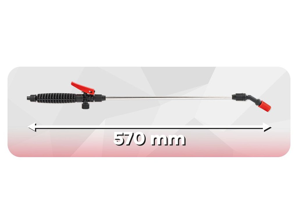 - Postřikovací tyč 57 cm – ergonomický úchyt a spoušť s možností blokace.