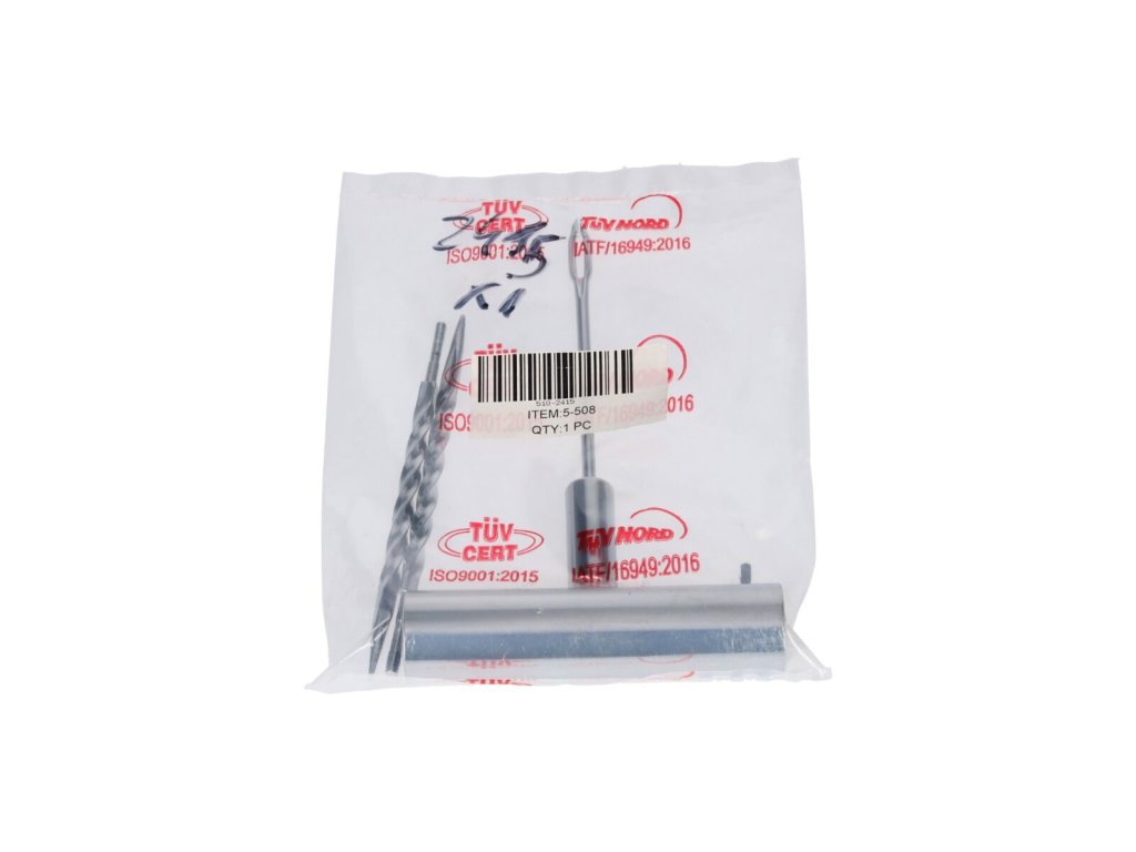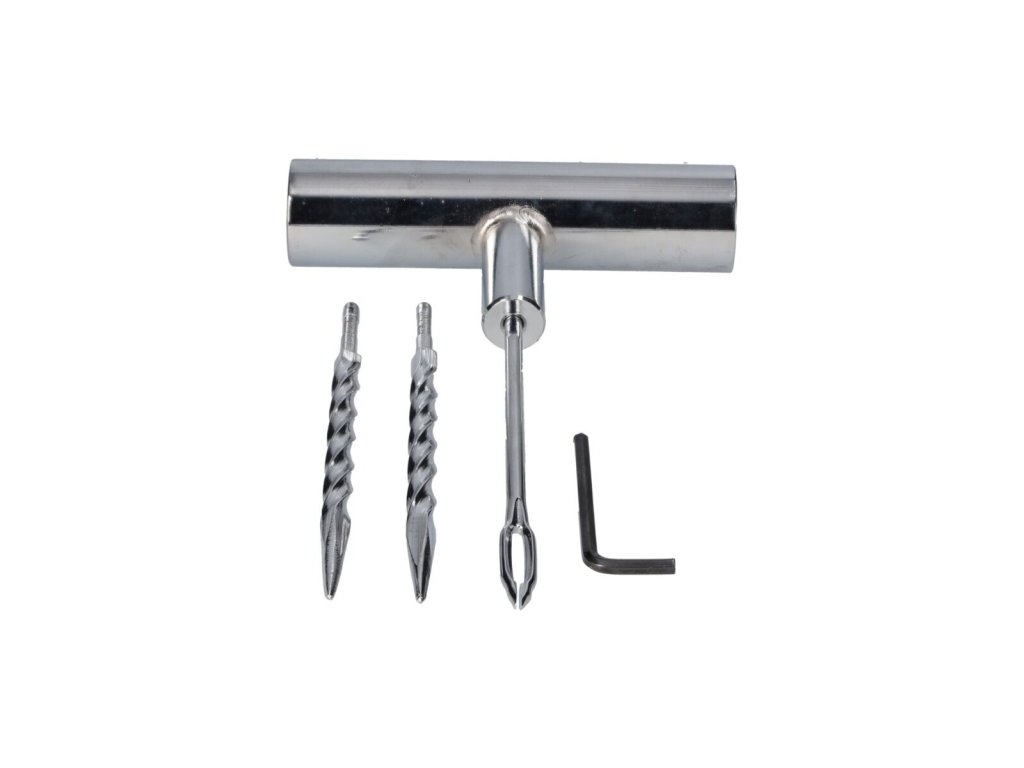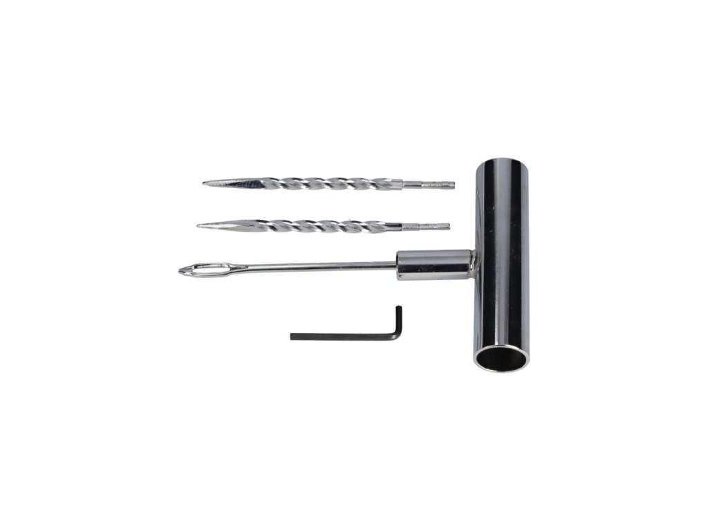 Speciální sada pro opravu pneumatik pomocí opravného šňůru, která obsahuje kovový držák s úložným prostorem a čtyři vyměnitelné nástavce. Vše uložené přímo v rukojeti pro snadné a kompaktní použití.