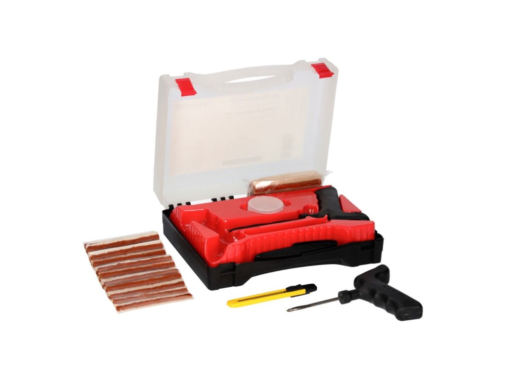 Profesionální sada na opravu pneumatik v praktickém plastovém kufříku je určena pro osobní a lehké užitkové vozy do 3,5 t. Umožňuje rychlou opravu bez nutnosti demontáže pneumatiky z ráfku. Díky kompaktnímu a kompletnímu provedení je ideálním vybavením pro dílny, autodopravce i běžné řidiče.