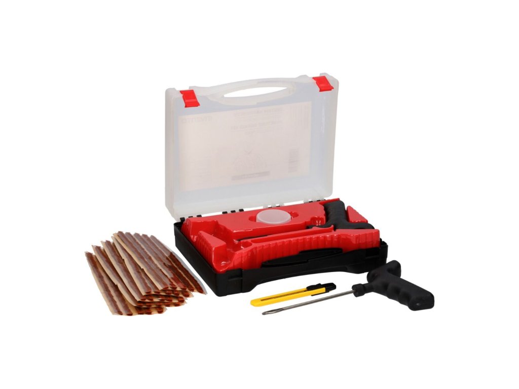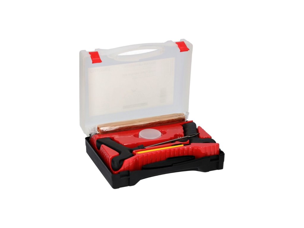 Profesionální sada na opravu pneumatik v praktickém plastovém kufříku je určena pro osobní a lehké užitkové vozy do 3,5 t. Umožňuje rychlou opravu bez nutnosti demontáže pneumatiky z ráfku. Díky kompaktnímu a kompletnímu provedení je ideálním vybavením pro dílny, autodopravce i běžné řidiče.