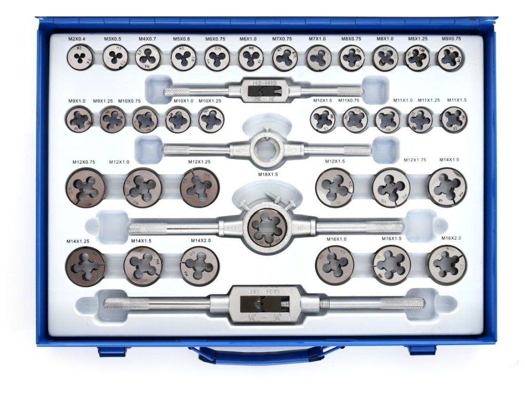 - 35 x 2 ks závitníky: M2x0,4mm; M3x0,5mm; M4x0,7mm; M5x0,8mm; M6x0,75mm; M6x1,0mm; M7x0,75mm; M7x1,0mm; M8x0,75mm;