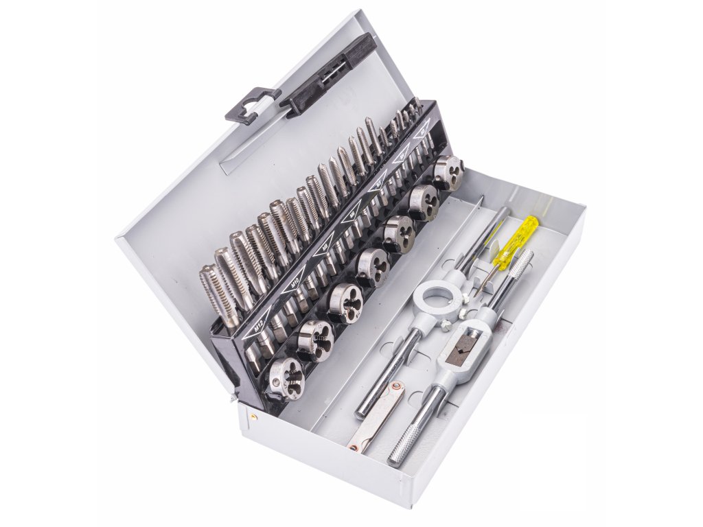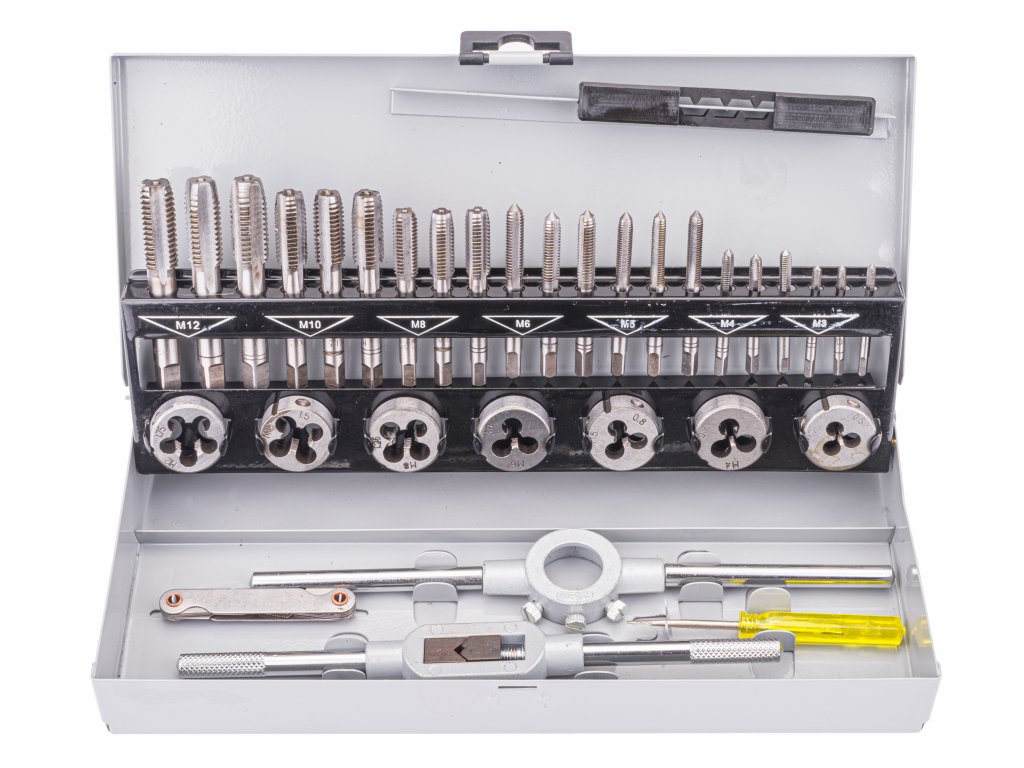 Moderní sada závitníků a závitových oček M3–M12 obsahuje 32 kvalitních nástrojů vyrobených z vysoce jakostní oceli. Díky praktickému kufříku z kovu je sada ideální pro přenášení i bezpečné skladování.