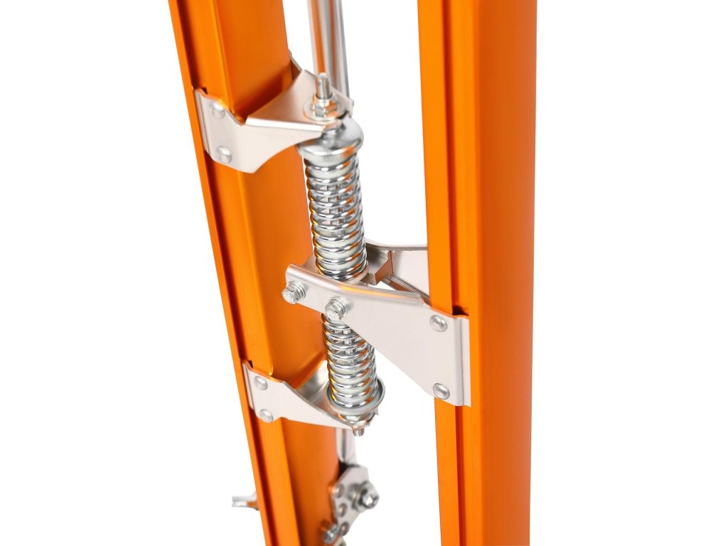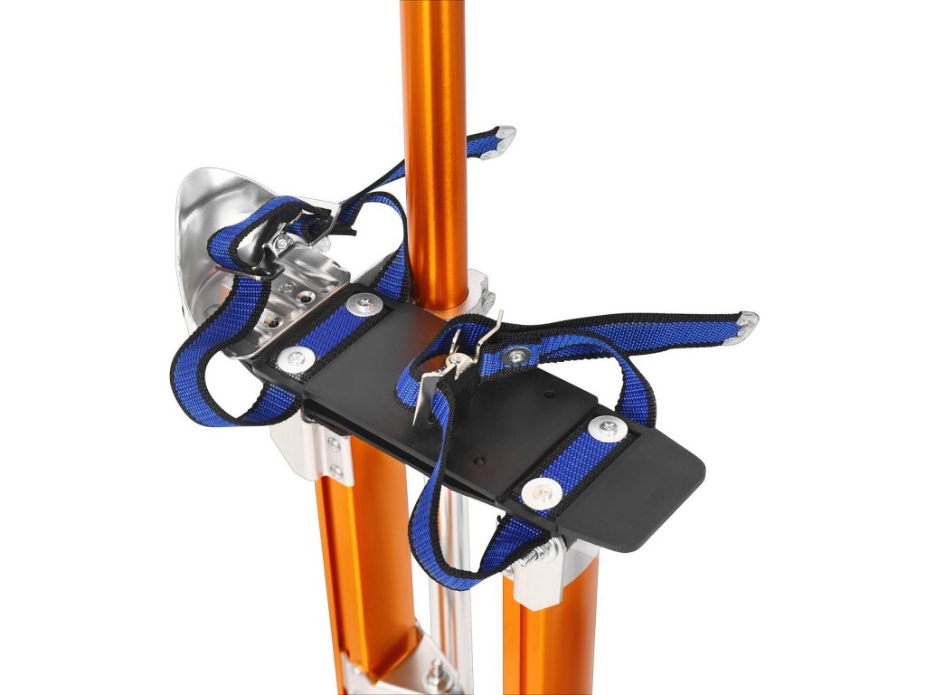 Rozsah nastavení výšky od 61 do 102 cm (24–40") umožňuje snadné přizpůsobení různým úkolům. Odlehčená, ale pevná hliníková konstrukce zajišťuje vysokou odolnost při zachování nízké hmotnosti. Ergonomické upínací pásy a protiskluzové platformy poskytují bezpečnost i stabilitu při práci.