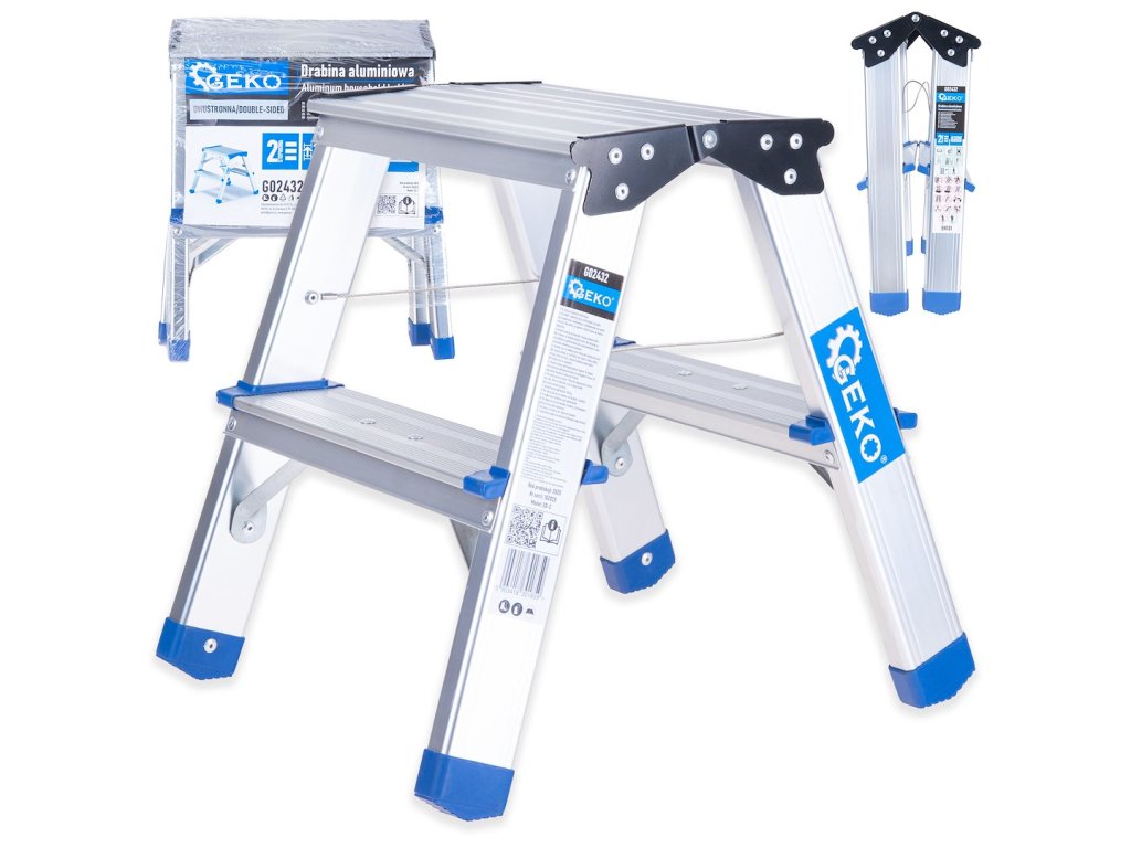 Oboustranné hliníkové schůdky 2stupňové GEKO G02432 | Nosnost 150 kgIdeální řešení pro domácí, dílenské i instalační práce. Umožňují pohodlný přístup ke stropům, horním policím, osvětlení a dalším hůře dostupným místům – bez nutnosti používat těžké vícedílné konstrukce. Díky nízké hmotnosti (1,5 kg) a kompaktním rozměrům se schůdky snadno přenášejí, rychle postaví a po práci uloží třeba do skříně nebo za dveře.