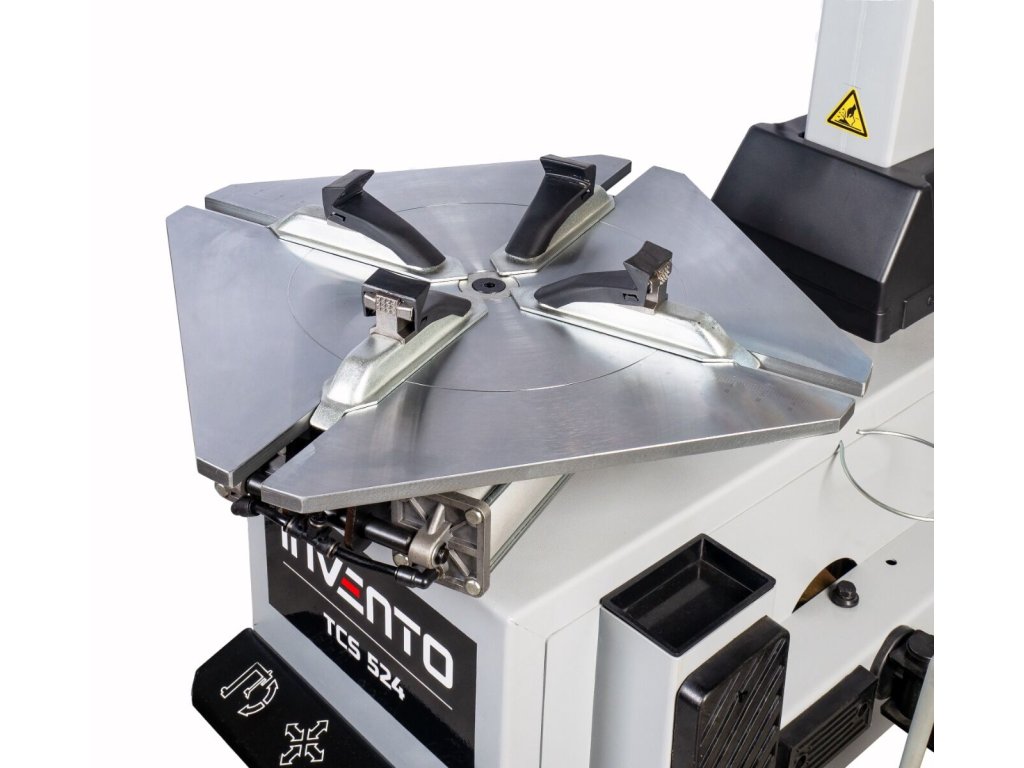 INVENTO TCS 524 2V je pokročilá automatická montážní zouvačka, určená pro demontáž a montáž pneumatik osobních i dodávkových vozidel. Díky pneumaticky ovládané naklápěcí sloupové konstrukci, automatickému odsunu montážní hlavy a dvěma rychlostem otáček stolu, je ideálním pomocníkem pro profesionální pneuservisy – zejména při práci s náročnějšími pneumatikami typu RUNFLAT.