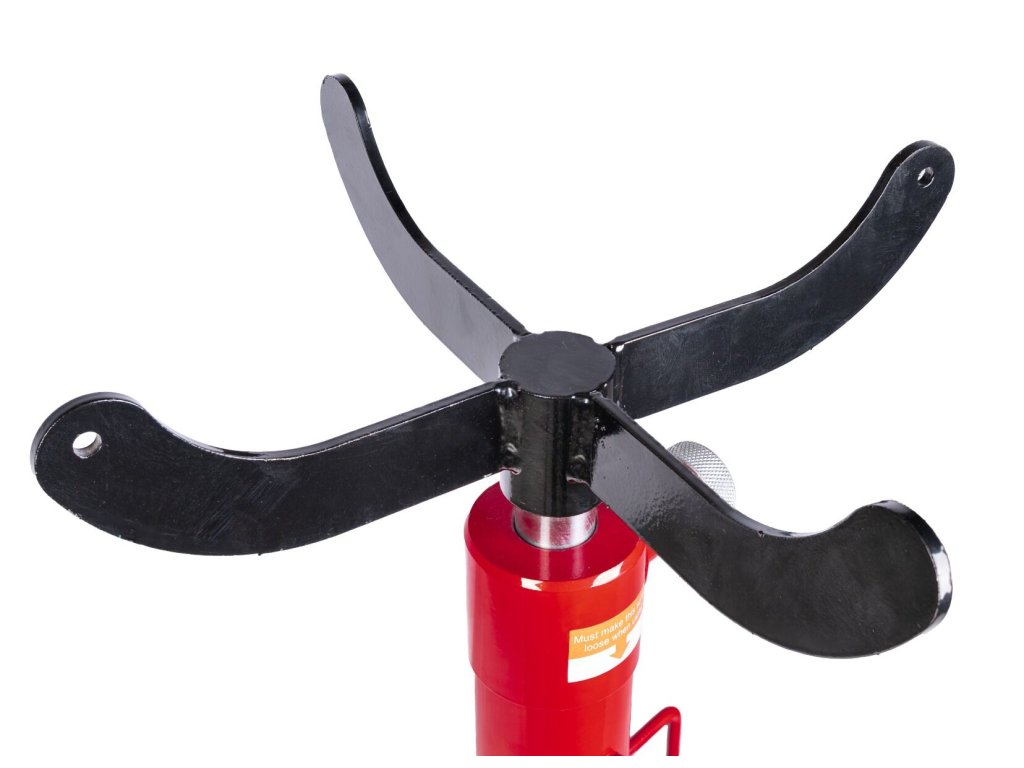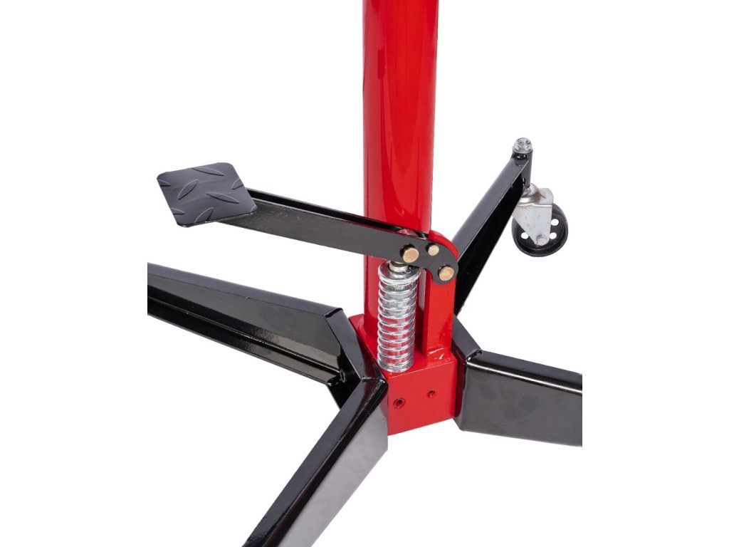 Součástí balení je speciální nástavec pro pohodlné a bezpečné uložení převodovky na zvedáku. Díky čtyřem otočným kolečkům s ložisky lze zařízení snadno přesouvat po dílně. Ovládání je řešeno nožní hydraulickou pumpou – zdvih probíhá sešlapáváním pedálu, spouštění pak uvolněním ventilu.