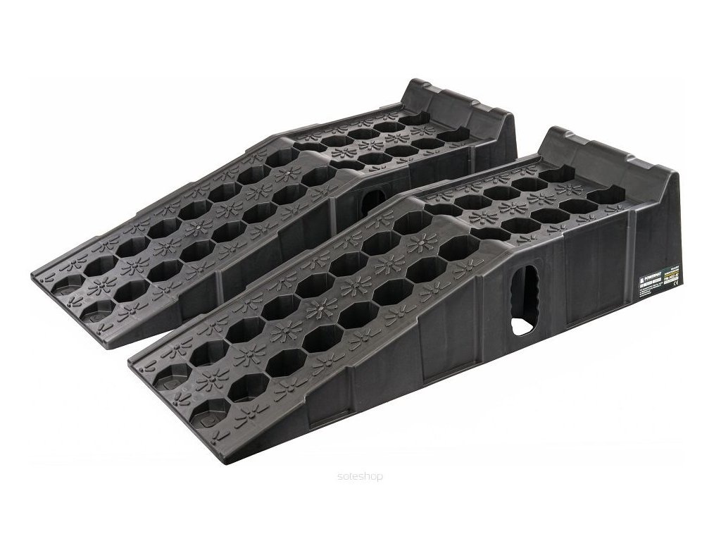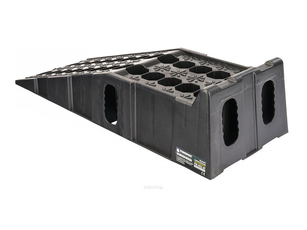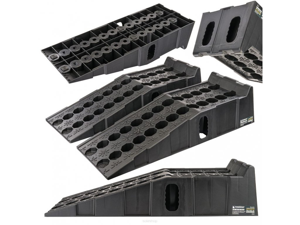 Nájezdy na auto PM-NZS-8T, Powermat PM1269 se vyznačují stabilní a odolnou konstrukcí, která se nedeformuje a nepraská. Mají dostatečnou délku a šířku pro většinu osobních aut, mírný nájezdový úhel a gumové podložky, které na rozdíl od jiných produktů na trhu jsou dodávány ve větším počtu (až šest), což zajišťuje bezpečný nájezd kol na platformu bez jejich posouvání. Vysoký omezovač brání náhodnému sjíždění z konce nájezdu.