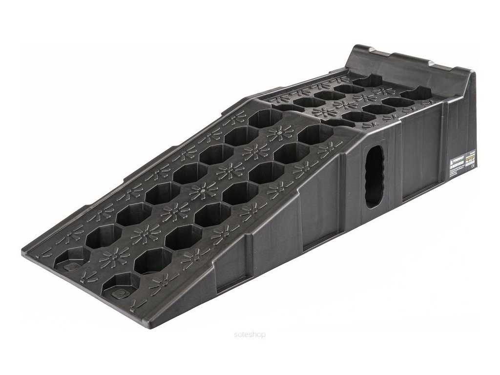 Díky speciálnímu povrchu nájezdy zajišťují účinnou přilnavost pneumatik, což zvyšuje bezpečnost při manévrování.