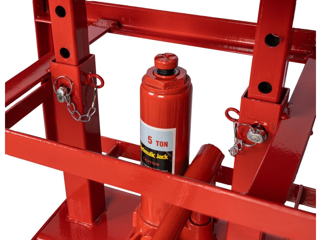 - Bezpečnost: hydraulický zvedák s ventilem, protiskluzové plošiny a dorazy