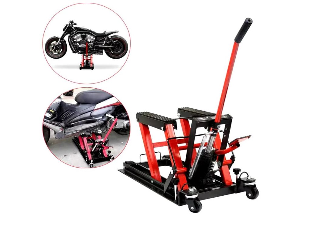 Nízkoprofilový zvedák je ideální pro zvedání a spouštění motocyklů, ATV, zahradních traktorů a dalších malých vozidel v garážích a dílnách. Jednoduchá obsluha, lehká a přenosná konstrukce umožňují bezpečnou a efektivní výměnu dílů či opravy. Vysoce kvalitní ocel, použitá na výrobu konstrukce, zajišťuje její dlouhou životnost a pevnost. Gumové prvky chrání rám vozidla před poškozením. Pohodlná rukojeť usnadňuje polohování a manévrování. Zvedák je vybaven dvěma pevnými a dvěma otočnými kolečky, což umožňuje snadné přesouvání v dílně. Možnost složení na plocho šetří prostor.